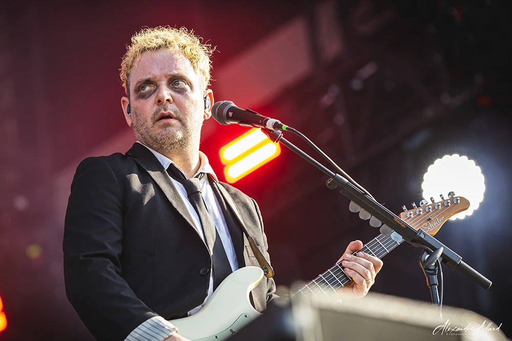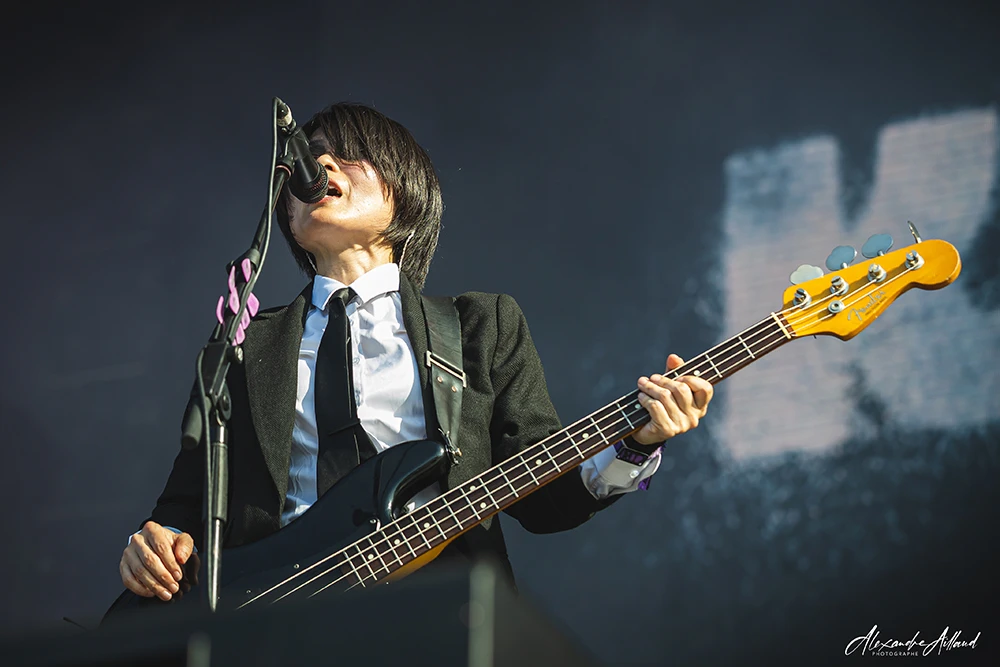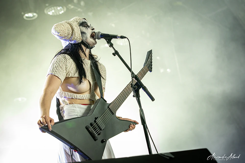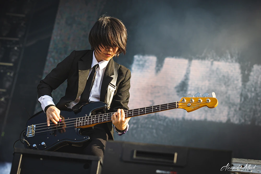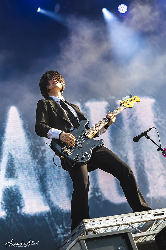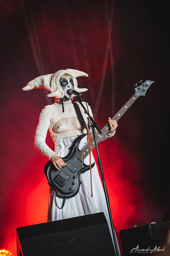Sous un ciel encore timide, une silhouette surgit sur la Mainstage 1 avec sur les épaules une tenue de hockeyeur et une Flying V en bandoulière. LUCIE SUE, rockeuse basque à l’univers aussi mordant qu’attachant, débarque avec aplomb. Et d’entrée le ton est donné : entre second degré assumé et riffs bien placés, on sent qu’on ne va pas s’ennuyer.