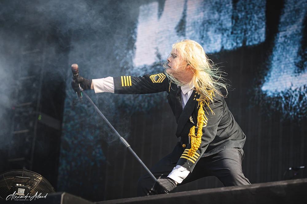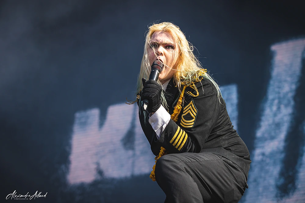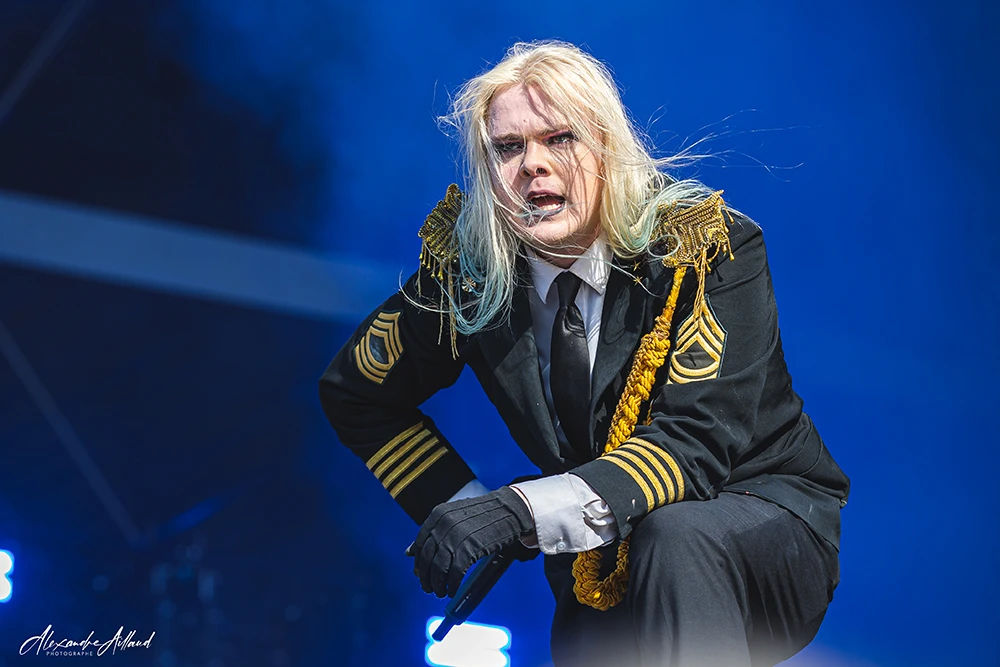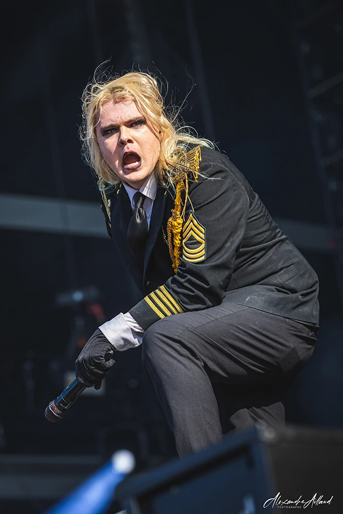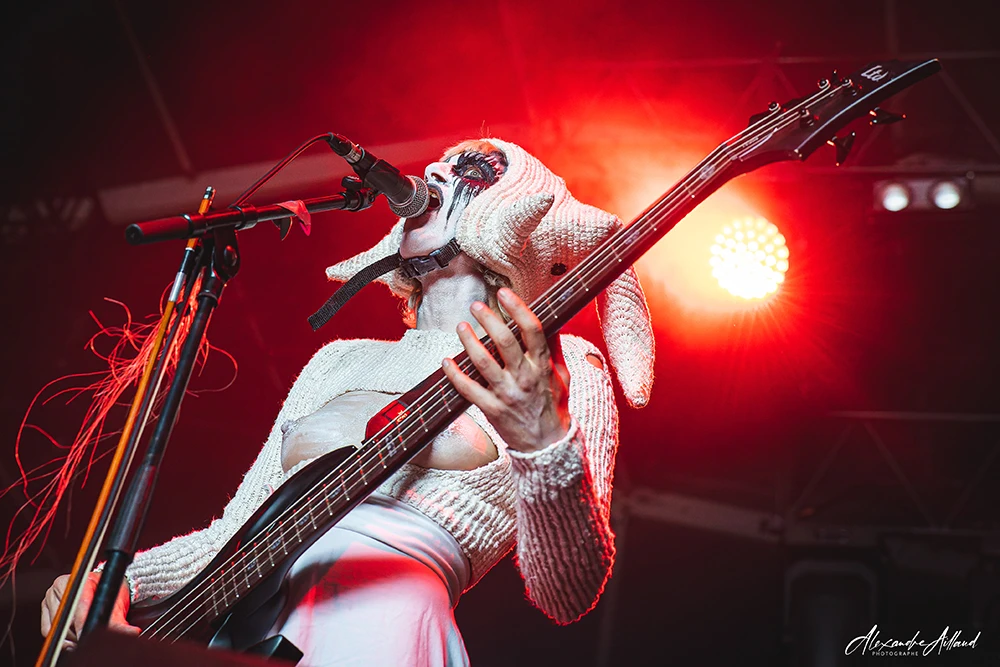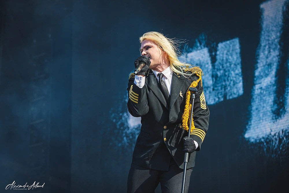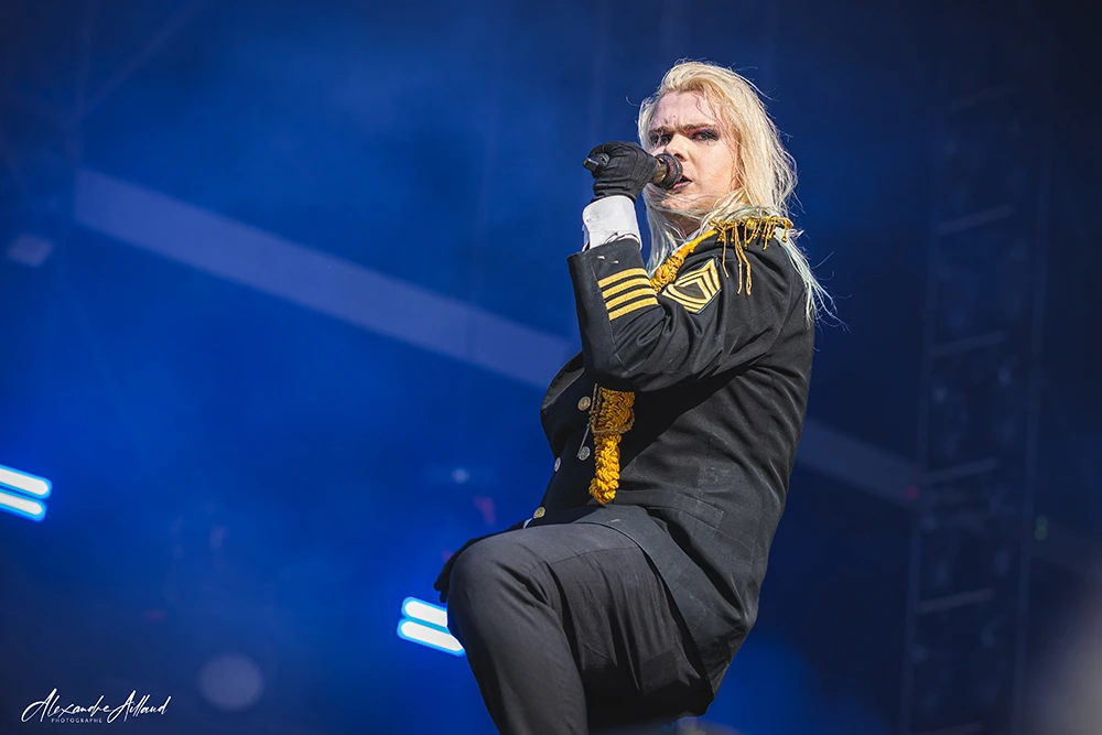 Elle nous rappelle, sourire aux lèvres, son passage improbable sur cette même scène avec STEEL PANTHER quelques éditions plus tôt. Un souvenir un peu fou qui contraste joliment avec la maturité de sa proposition actuelle. Car aujourd’hui, c’est bien son nom qui s’affiche à l’arrière sur l’écran géant, et son univers qu’elle impose sans forcer.