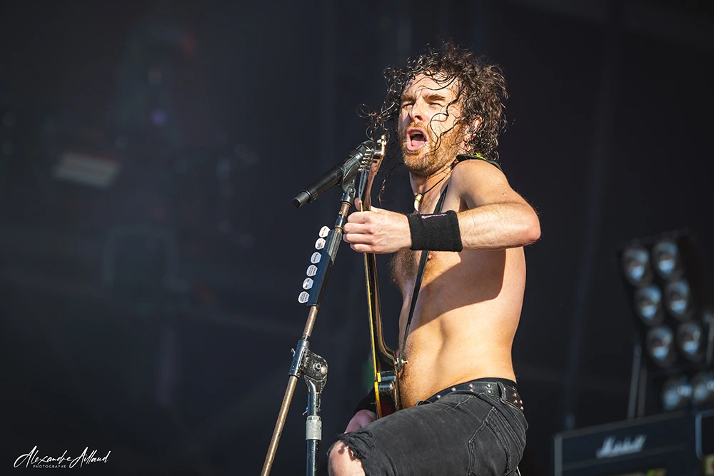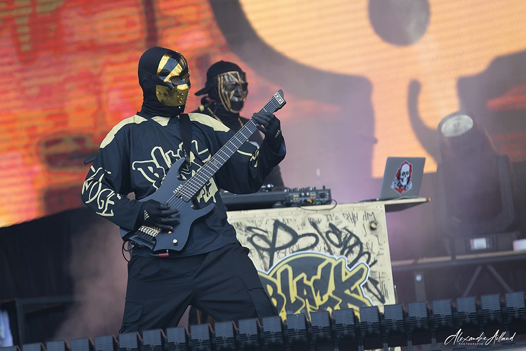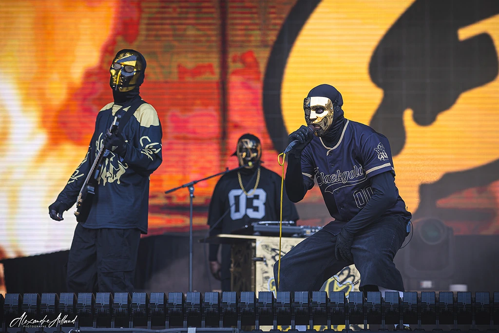 Dès « Sound of the underground », le public est happé dans l’univers du groupe. « On another level » et « Social Blackout » confirment que BLACKGOLD maîtrise la recette, oscillant entre passages lourds et refrains fédérateurs. Il fait déjà bien chaud et leurs titres font grimper la température car ils nous rappellent à tous pourquoi on a aimé le Nu-Metal à ses débuts : cette énergie brute et cette insolence sonore. L’ambiance atteint un sommet sur leur reprise de « I ain’t goin’ out like that » des CYPRESS HILL qui jouera ce même titre sur cette même scène quelques heures plus tard.