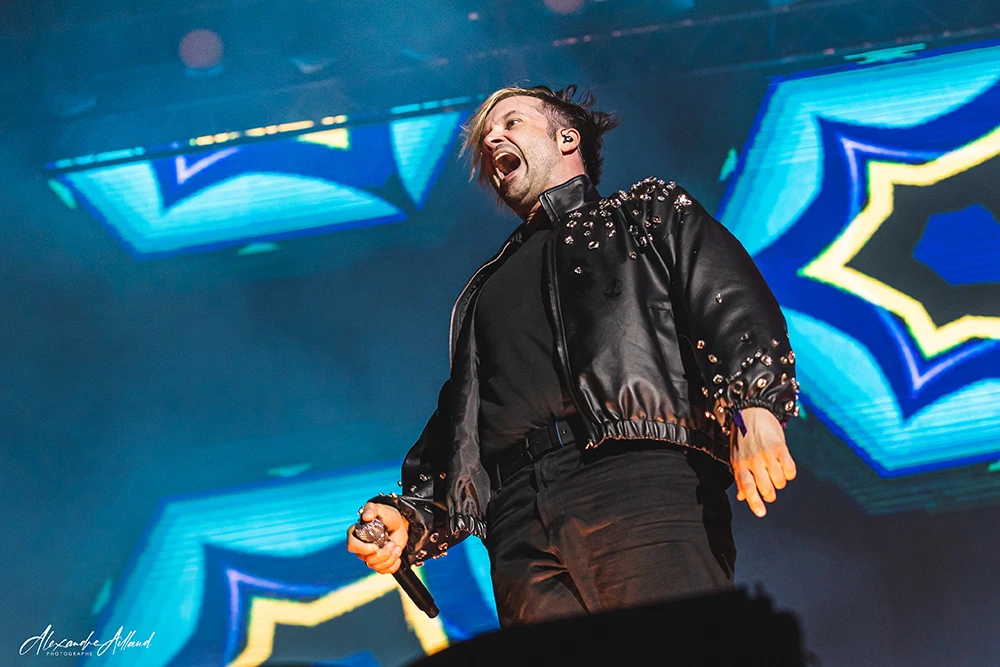 Les écrans s’illuminent et la machine gothico-metalcore américaine se met en route avec « Meltdown ». Tout est calibré au millimètre : visuels léchés, slogans projetés, effets pyrotechniques qui déchirent l’air brûlant.