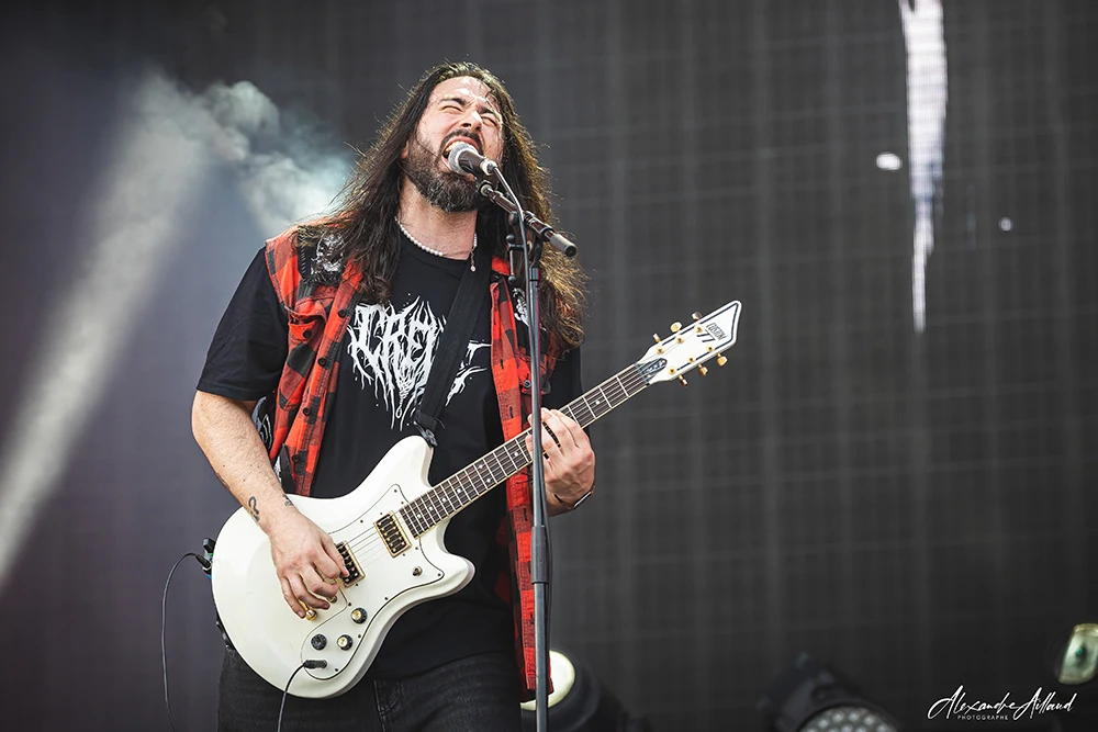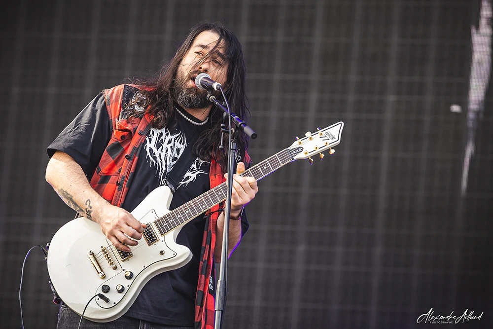 Et puis survient le moment que personne n’avait vu venir : Will Ramos, chanteur iconique de LORNA SHORE, lunettes en forme de cœurs vissées sur le nez, déboule sur scène pour un featuring dévastateur. La double attaque vocale transforme la fosse en champ de bataille, entre circle pits et walls of death. L’anecdote veut que la rencontre entre ASHEN et Ramos remonte à deux ans, lors d’une date lyonnaise où le groupe parisien avait partagé l’affiche avec LORNA SHORE. Depuis, un lien s’est tissé… et ce Hellfest a scellé la connexion.