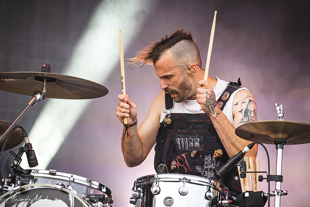 Pour ouvrir ce dimanche sur la Warzone, le Hellfest a sorti l’artillerie lourde. CALCINE, formation parisienne née pendant le confinement, débarque avec un seul objectif : vous secouer les cervicales. Au chant, Stef hurle avec une puissance brute qui nous percute de plein fouet. Si vous n’étiez pas encore réveillé, son cri initial a eu l’effet combiné d’un café noir, Red Bull, Guronzan !