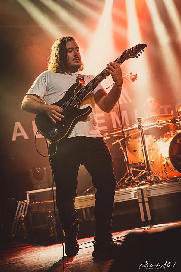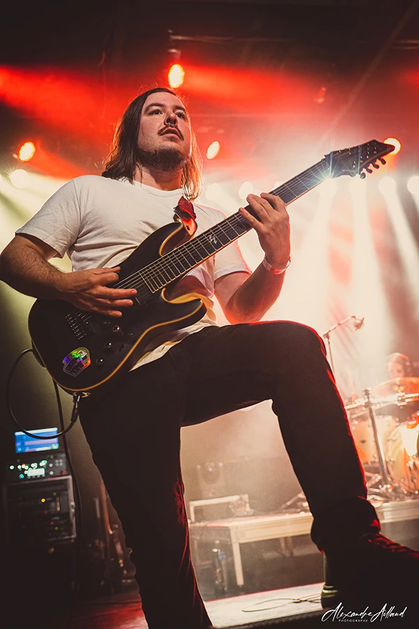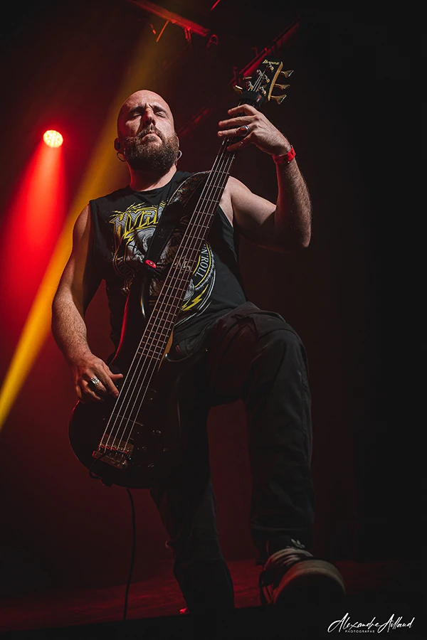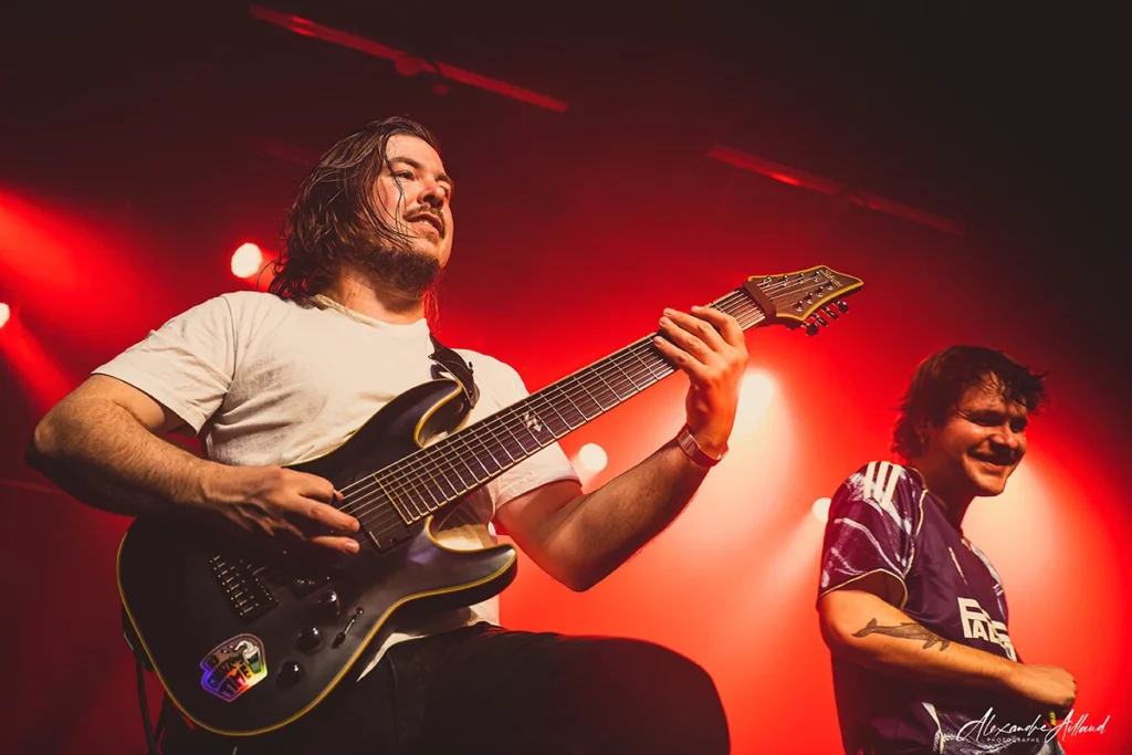 Six morceaux de leur premier album sont joués ce soir. Leur Metalcore moderne regorge de changements de signatures rythmiques, de cassures maîtrisées, de passages lourds et planants. Le chant navigue entre clair, scream et growl avec une aisance impressionnante. Les lignes de basse, parfois presque déstructurées, ajoutent une vraie personnalité au son. Mention spéciale au duo Marc (guitare 8 cordes) / Yoann (basse 7 cordes), qui fait vibrer les murs, notamment sur « Osvominae » dont le riff de base est enivrant.