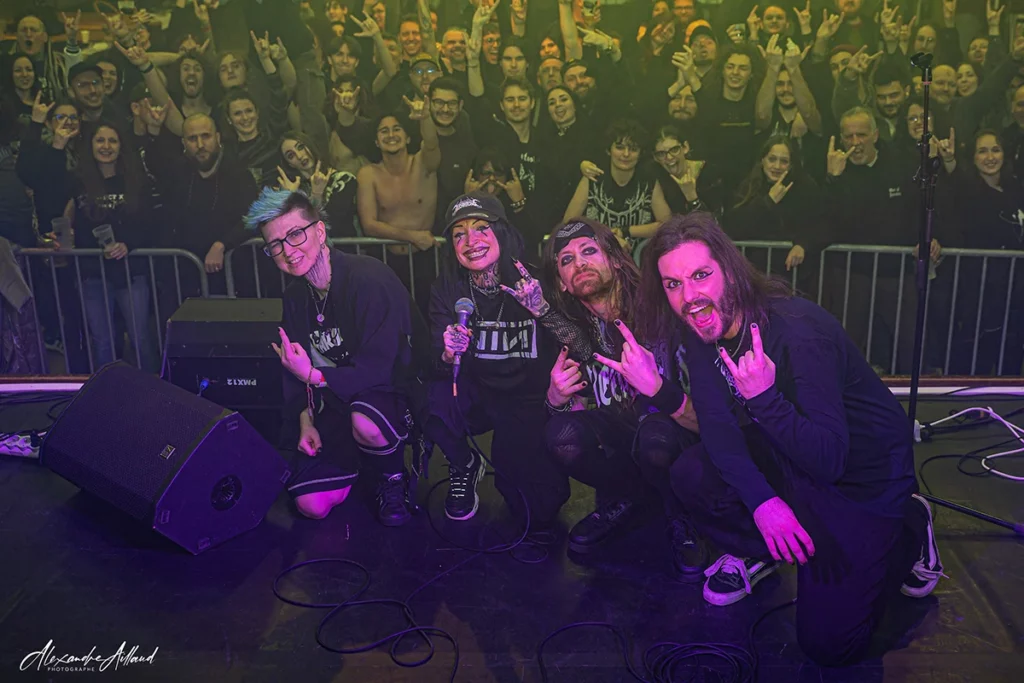 Dans la fosse, ça saute, ça headbangue, ça se bouscule gentiment. Même un gars déguisé T-Rex improvise un mosh improbable au milieu du pit. La température grimpe encore d’un cran sur « Frontière« , qui achève de retourner la salle… avant que le public sudiste, loin d’être fatigué, en redemande. Les ALCHEMISTS reviennent et rejouent « Ghost » pour le plus grand bonheur des troupes. Public conquis. Mission accomplie et comme dirait Jules César : « Veni, vidi, vici.«